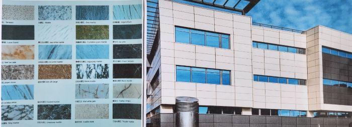 첨부한 24가지 대리석 문양에서 선택하여 품위있는 빌딩 외벽을 데코레이션 하면서 준불연으로 화재에 안전합니다.